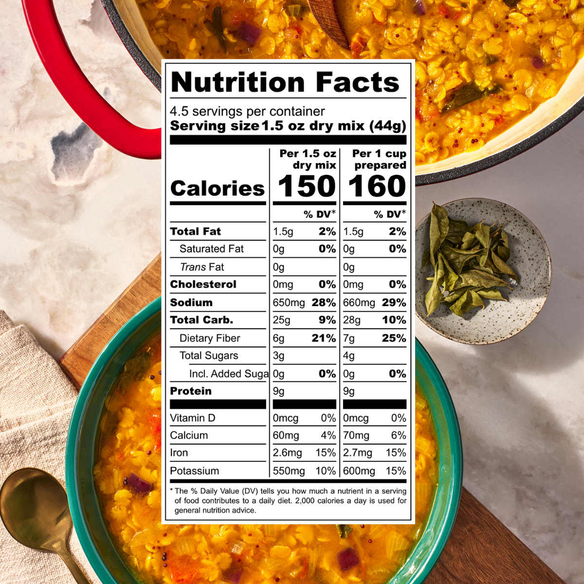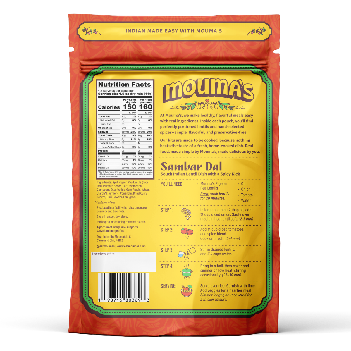 Sambar Dal is a South Indian classic made from pigeon pea lentils. This dal gets its signature flavor from a variety of blended and whole spices like dried curry leaves, mustard seeds, kashmiri red chili powder, and more. A wholesome meal with a classic Indian kick!
